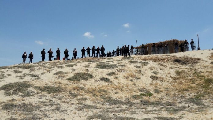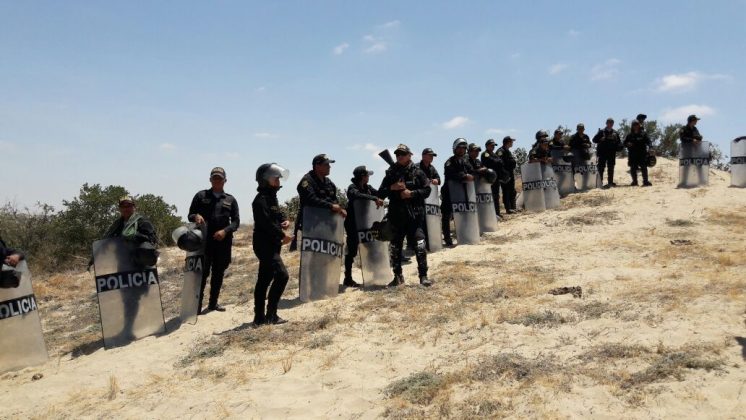 La mañana de este viernes, unos 200 efectivos de la Policía acudieron al llamado de la empresa Santa Regina, titular del terreno donde se asientan las familias que lo perdieron todo tras el desastre que dejó el Niño Costero en el Bajo Piura, a brindar seguridad pues la empresa colocaría unos hitos en la zona.