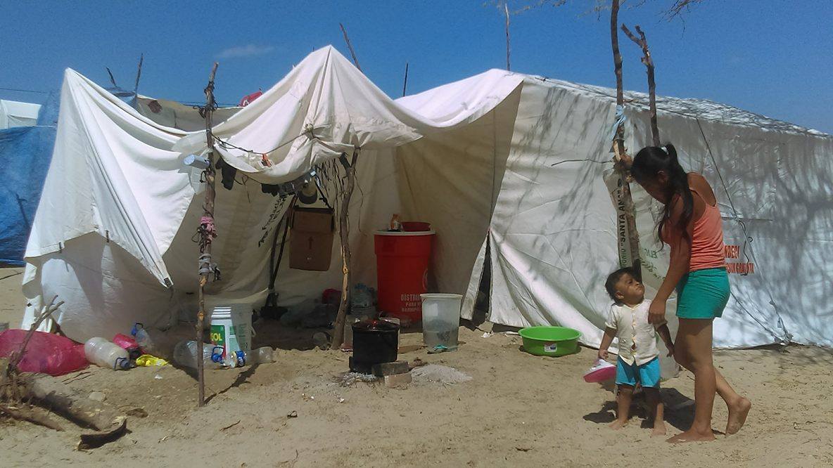 A eso se suma el clima. Por las mañanas el intenso sol hace imposible estar un minuto dentro de las carpas entregadas por INDECI. Por las noches, las fuertes corrientes de aire generan una sensación de frío que no puede evitarse con las precarias carpas “Necesitamos frazadas porque en la noche corre un fuerte aire, sobre todo por los niños”, expresa el dirigente.