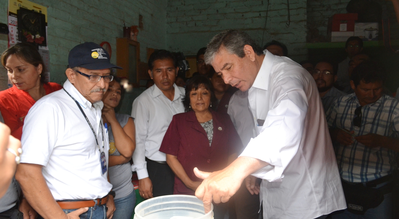 Las autoridades de salud en compañía de autoridades regionales y municipales de Piura y Castilla  llegaron hasta una vivienda en la Urbanización San José de Piura para supervisar las actividades de prevención en la lucha contra el dengue, entre ellas las abatización.