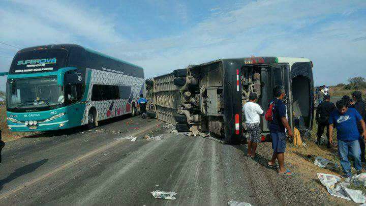 La volcadura de un bus de la empresa «Dora» ocurrido a las 8 de la mañana a la altura del kilómetro 5 del peaje Paita – Piura, dejó el saldo de 21 heridos, quienes fueron trasladados al hospital «Las Mercedes» (Paita).