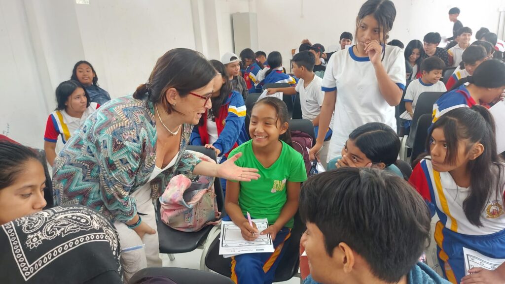 La actividad se llevó a cabo durante dos fechas consecutivas, con la finalidad de alcanzar a todo el alumnado de secundaria. La sesión estuvo a cargo de María Dolores Solo de Zaldívar Maldonado, licenciada en Psicología y voluntaria internacional del programa Estrechando Lazos 2025 de Taller de Solidaridad, proveniente de Mérida, España. Desde el inicio hasta el final, la especialista desarrolló la jornada de manera participativa y cercana, con el apoyo permanente de la psicóloga del proyecto, Magíster Olga Chonto Ojeda. Además, se contó con la presencia de María Fernanda Dioses, psicóloga de Pacasmayo, quien también acompañó esta importante actividad.