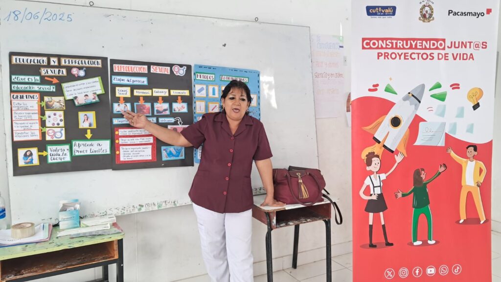 En el marco del proyecto Construyendo Juntos Proyectos de Vida, impulsado por Pacasmayo y Cutivalú, se desarrolló una nueva sesión formativa dirigida a estudiantes de secundaria de la I.E. 20138, abordando la temática de salud sexual y reproductiva desde un enfoque educativo y preventivo.
