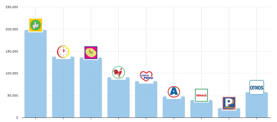 Según el conteo oficial de la ONPE al 97% de actas procesadas, Reynaldo Hilbck ocupa el primer lugar con 24.6%, seguido por Luis Neyra con un 17.9% y en tercer lugar Santiago Paz con 16.4%