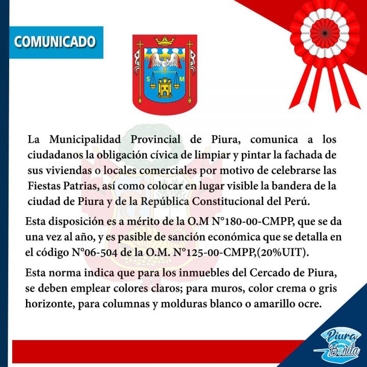 El alcalde de Piura descarta que se multe a quienes no pinten sus casas o locales en la ciudad. Comunicado que obligaba recibió varias críticas