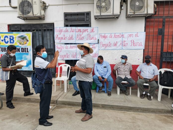 El presidente de la Junta de Usuarios del Alto Piura, Arnulfo Adrianzen Juárez, inició una huelga de hambre hace cinco días exigiendo la salida del gerente del Proyecto Especial de Irrigación e Hidroenergético del Alto Piura, Manuel Vega Palacios, y de sus funcionarios por presuntas irregularidades y negligencias que ponen en riesgo al proyecto. Durante su manifestación de este lunes sufrió una descompensación a su salud, debido a que solo está ingiriendo agua.