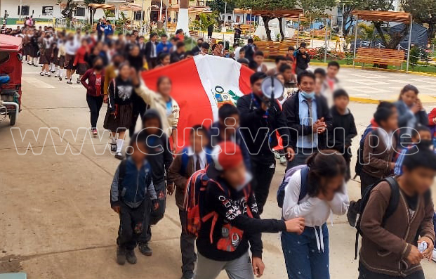 La Policía informó que 200 alumnos y profesores del colegio Fray Martín de Porras de Huarmaca participaron el último martes 13 de diciembre en una protesta en horas de la tarde en las principales calles del distrito.