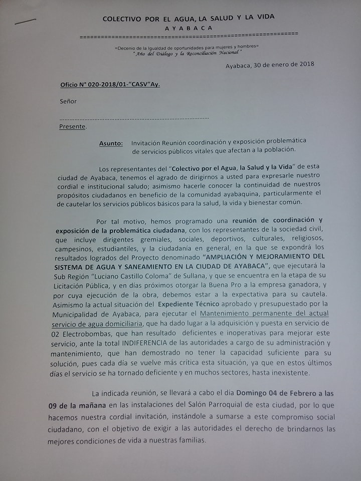 Especial Chira-Piura (Pechp), fue convocada el 19 de diciembre del 2017.