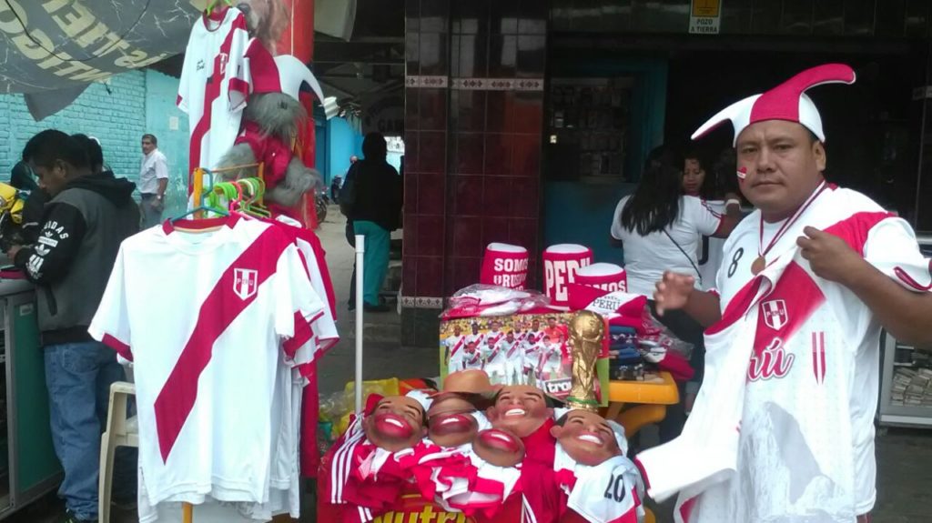 En el Complejo de Mercados de Piura, decenas de hinchas acudieron a los puestos de venta que empezaron a vender y rematar camisetas, máscaras, vinchas, stickers y gorros para alentar esta tarde a la blanquirroja.