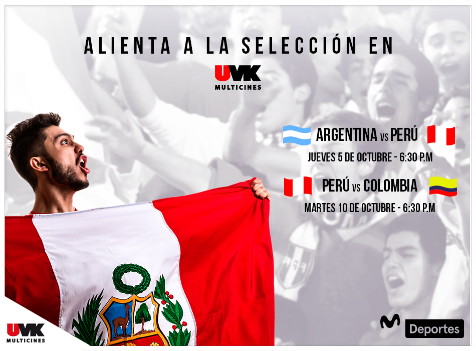 Finalmente, Multicines UVK también anunció en sus salas la transmisión de los partidos Argentina-Perú y Perú-Colombia. Este último será la próxima semana.