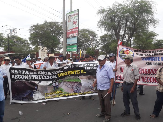 Unos dos mil agricultores de la región Piura participaron este lunes 28 de enero de una movilización con motivo del avance en el proceso de reconstrucción en el sector agrario, que consideran lento.