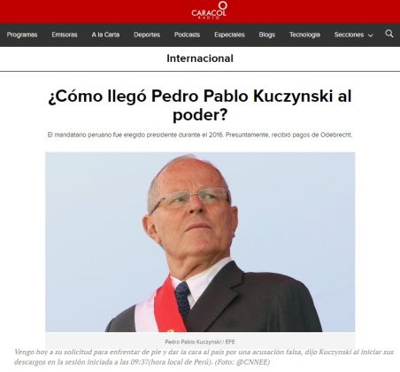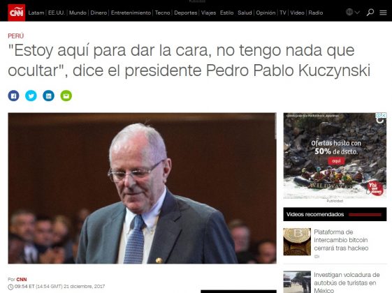 La cadena estadounidense CNN destacó la cita «Estoy aquí para dar la cara, no tengo nada que ocultar», que pronunció en la víspera el jefe de Estado peruano. Por su parte, la cadena inglesa BBC analiza el panorama político de nuestro país preguntándose por qué se habla de un «golpe de Estado exprés».