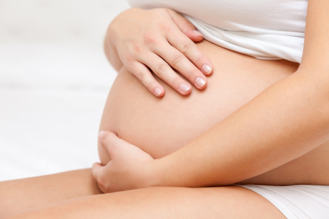 Pregnant woman touching her large belly
