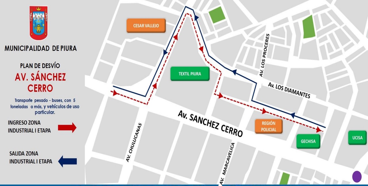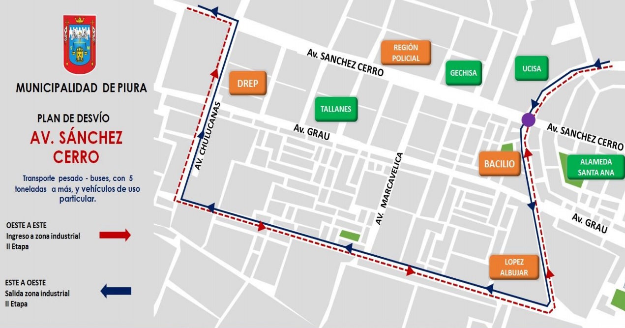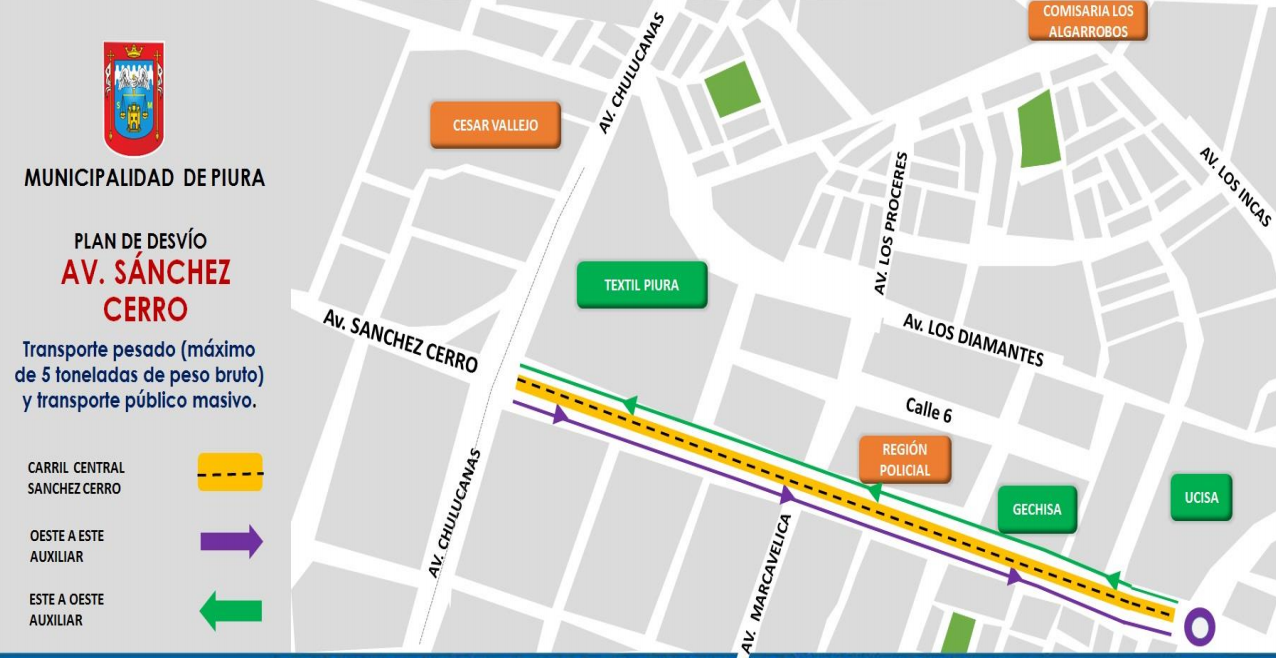 2.- Los vehículos de uso particular y de carga pesada que superen las 5 toneladas deberán ir desde el cruce de las avenidas Sánchez Cerro con Chulucanas hasta la avenida Don Bosco (exCircunvalación), luego al cruce con la avenida César Vallejo y finaliza hasta el óvalo Cáceres.