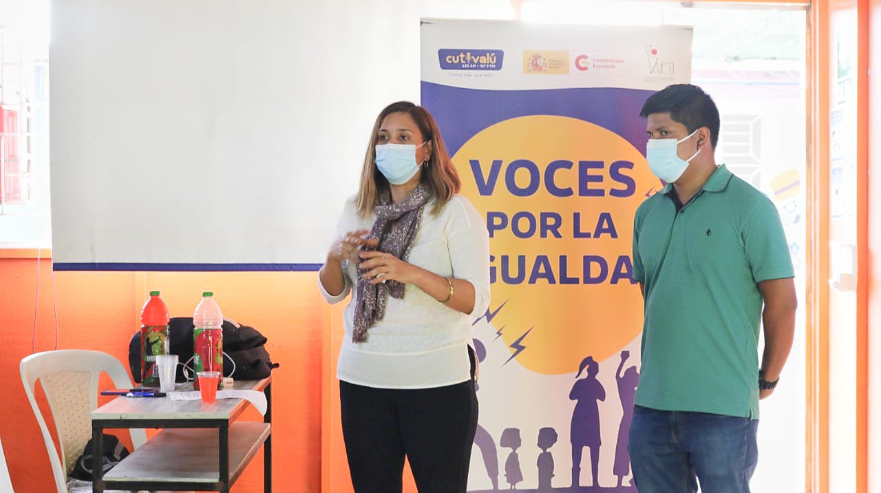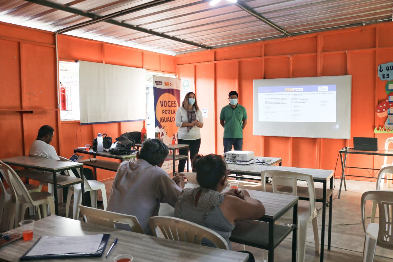 La licenciada Nadia Agurto, especialista de Cutivalú, y el licenciado Miguel Márquez explican la importancia de la creación de las las Instancias Comunitarias