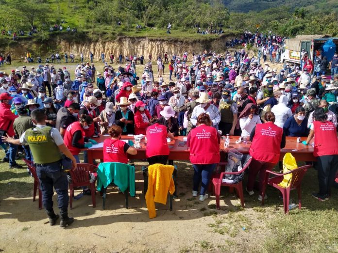El último lunes, los beneficiarios fueron convocados a la comunidad de Hualcuy, y el martes a la comunidad de El Toldo. En ambos hubo una concentración y aglomeración diaria, superior a las 3000 personas.