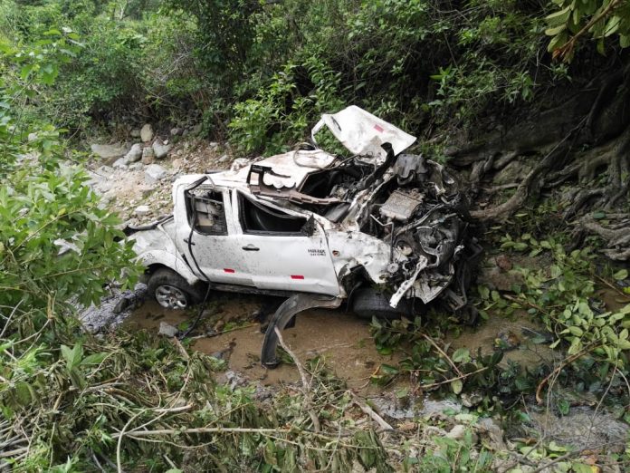 La camioneta de color blanco y placa F86 925 cayó de forma tan violenta que todos los cadáveres quedaron desperdigados entre las formaciones rocosas, pues el vehículo dio varias vueltas de campana.