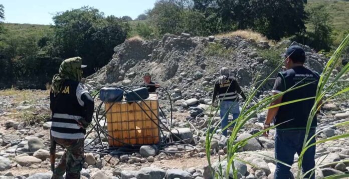 Las autoridades comprobaron que en la zona había dos pozas de 15 metros de ancho por 15 metros de largo y con una profundidad de 5 metros que servían para las actividades de extracción de oro de forma ilegal.