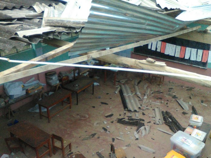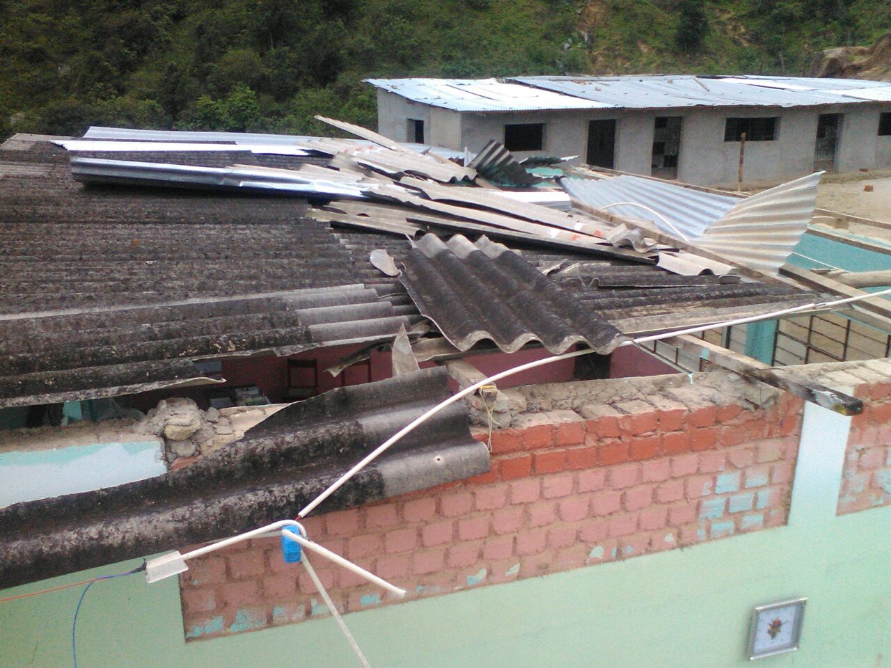 Fuertes vientos destruyeron este viernes el techo de calaminas y eternit de la institución educativa Ampliación de Servicios N° 14953 del caserío Pampa Verde, en el distrito de Sapillica (Ayabaca). El fenómeno también afectó a unas cuatro viviendas aledañas.