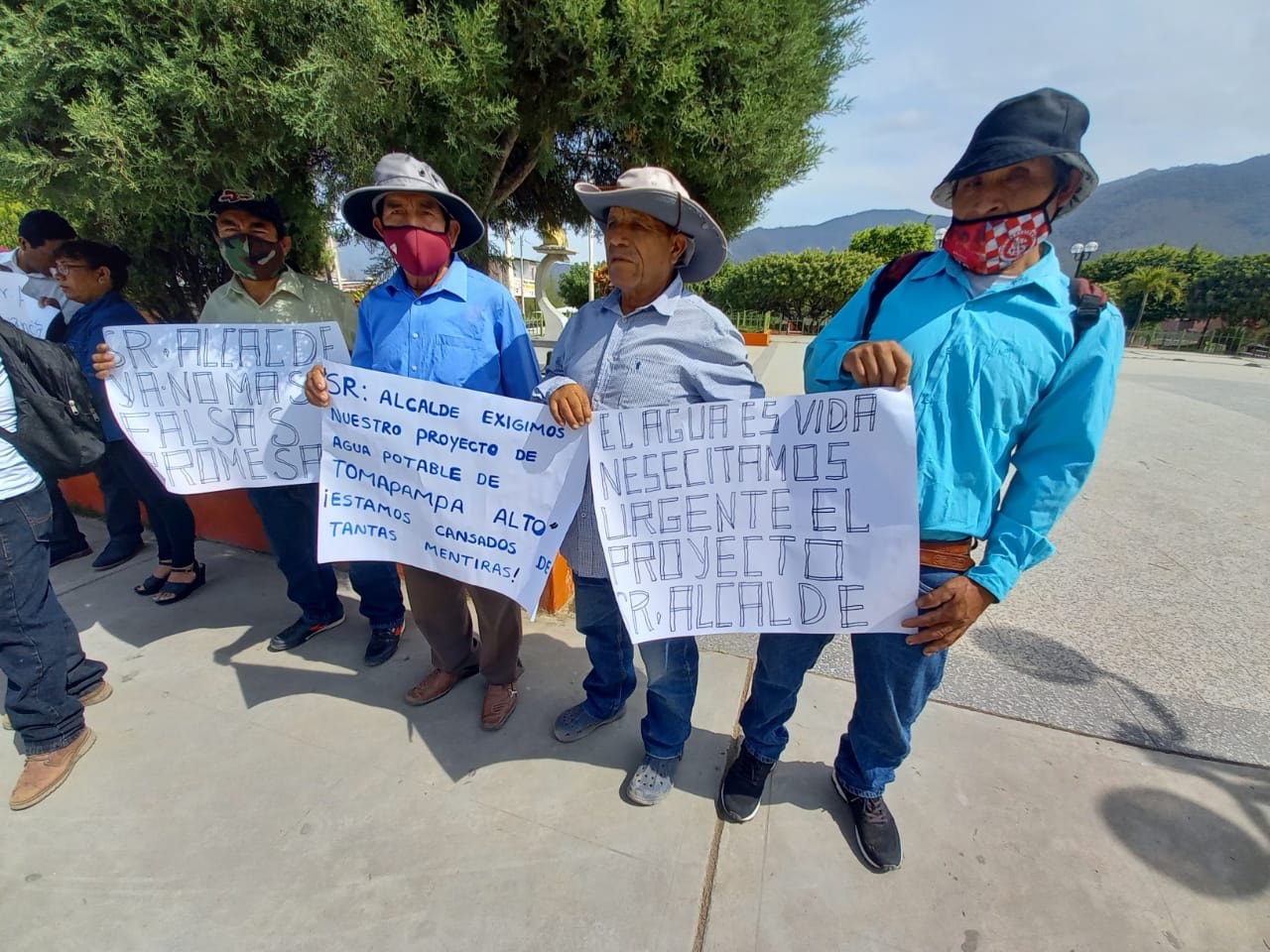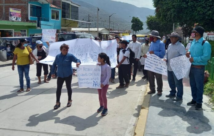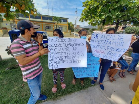 Más de 40 familias del caserío de Tomapampa Alto, en el distrito de Paimas, en Ayabaca, llegaron hasta el frontis de la Municipalidad distrital para expresar a los funcionarios su molestia y malestar por la burla e incumplimiento del alcalde, Jorge Saavedra Castillo, sobre la obra  de agua potable para Tomapampa, promesa hecha en campaña electoral y que hasta el momento la autoridad no cumple.