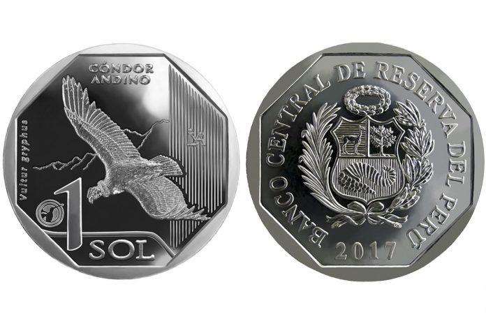 El Banco Central de Reserva del Perú pone en circulación desde el 13 de diciembre de 2017, la tercera moneda de la Serie Numismática “Fauna Silvestre Amenazada del Perú” alusiva al Cóndor Andino.