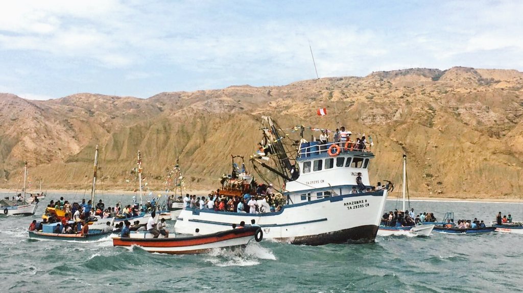 9 a.m. Procesión del santo patrono San Pedro. El anda es trasladada desde la iglesia y embarcada por la playa hacia la embarcación donde hará la procesión por el mar, acompañada por las embarcaciones de pescadores, de la marina y autoridades, y de visitantes.