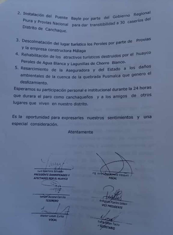 Cansados de esperar la atención de las autoridades, los pobladores del distrito de Canchaque en Huancabamba acatarán un paro preventivo de 24 horas este viernes 12 de noviembre para exigir que declaren en emergencia los botaderos con materiales excedentes de la obra de la carretera Canchaque – Huancabamba.