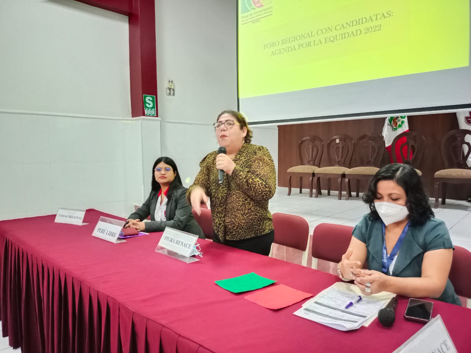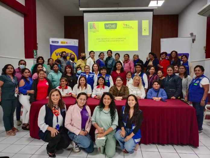 Las candidatas de cuatro partidos y movimientos regionales expusieron sus propuestas para mejorar las condiciones de vida de las mujeres frente a las lideresas de organizaciones sociales durante el I Foro Regional Agenda por la Equidad. Dicho foro está organizado por la Mesa de Concertación de Lucha contra la Pobreza Piura, Cutivalú y Cedepas.