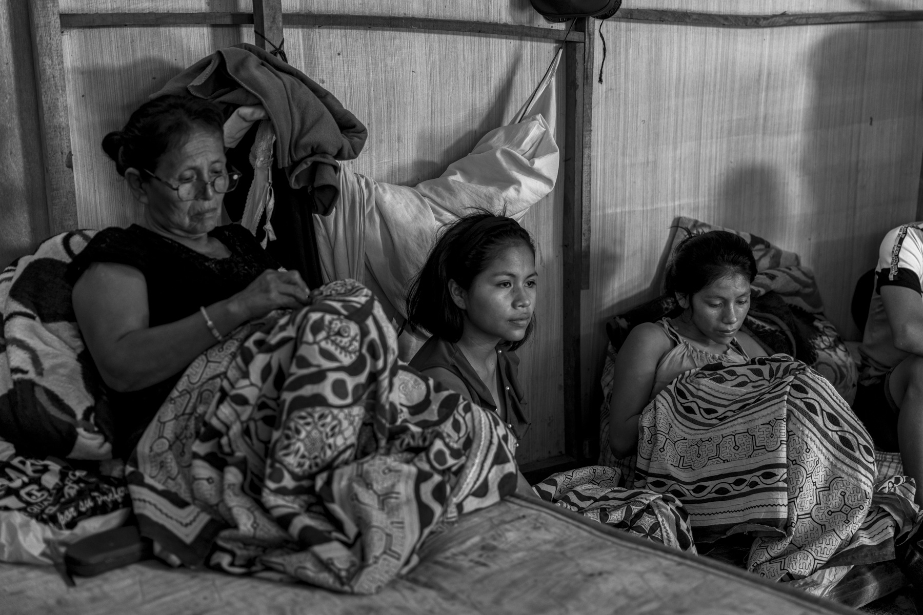 LABORES. En estos días de aislamiento, las familias elaboran los bordados tradicionales de su cultura a la espera del momento en que puedan volver a salir para venderlos. La artesanía es su principal fuente de ingresos.