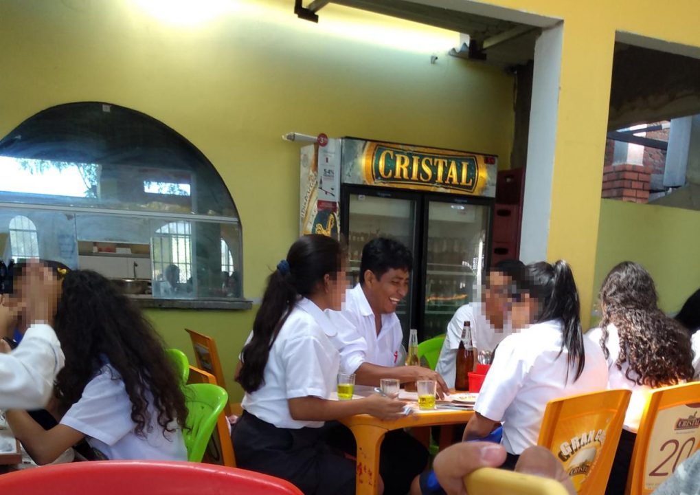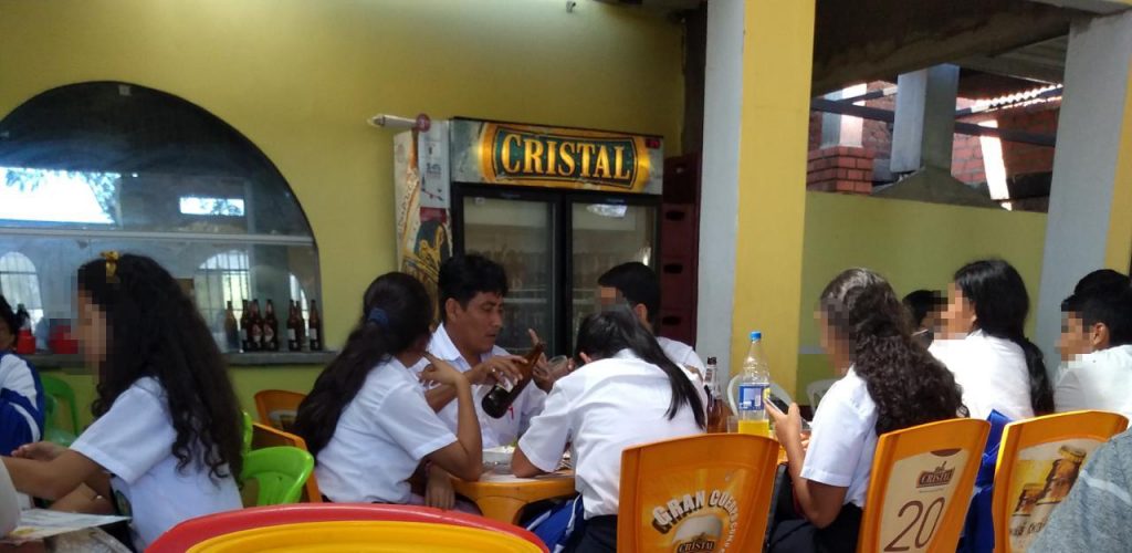 Un docente fue captado junto a sus alumnos y alumnas bebiendo cerveza y chicha en una picantería del Medio Piura.