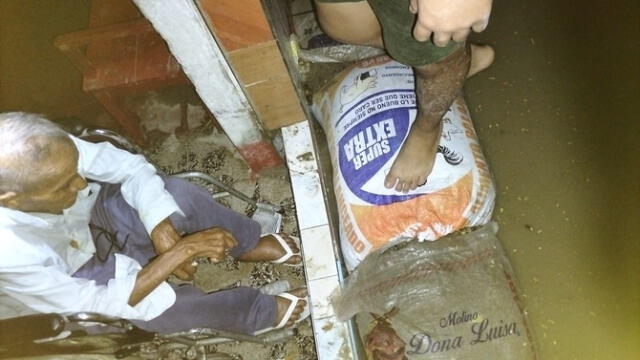 Cerca de la medianoche, el agua ingresó a la vivienda de los ancianos, a pesar de que habían colocado sacos de arena, narró Toribia Melendez, de 82 años. Añadió que el líquido elemento se extendió a su sala, cocina, cuartos y al patio.