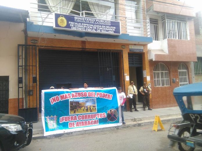 La diligencia se realiza en el Juzgado de Investigación Preparatoria Supraprovincial Transitorio de Corrupción de Funcionarios de Sullana, a cargo del juez Carlos Muñoz Alfaro. Hasta la sede judicial llegó un grupo de ayabaquinos con pancartas en mano, a la espera de la resolución.