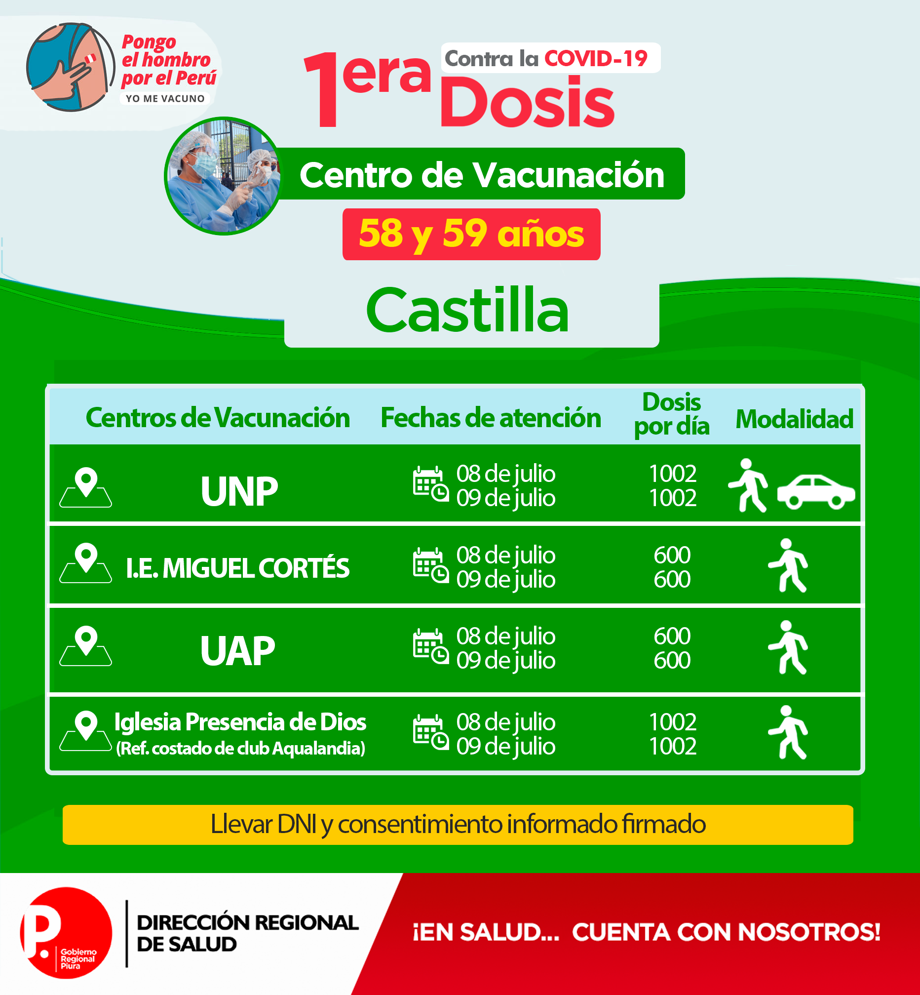 Según informó la Dirección Regional de Salud de Piura, en este distrito, también se han habilitado los siguientes puntos de vacunación:
