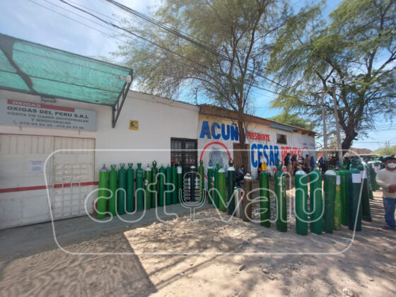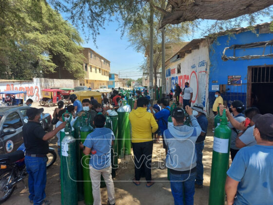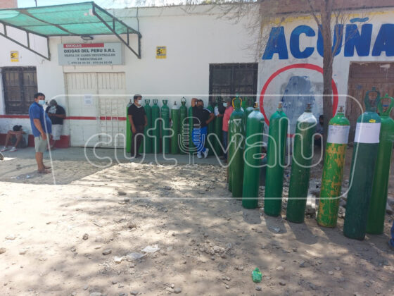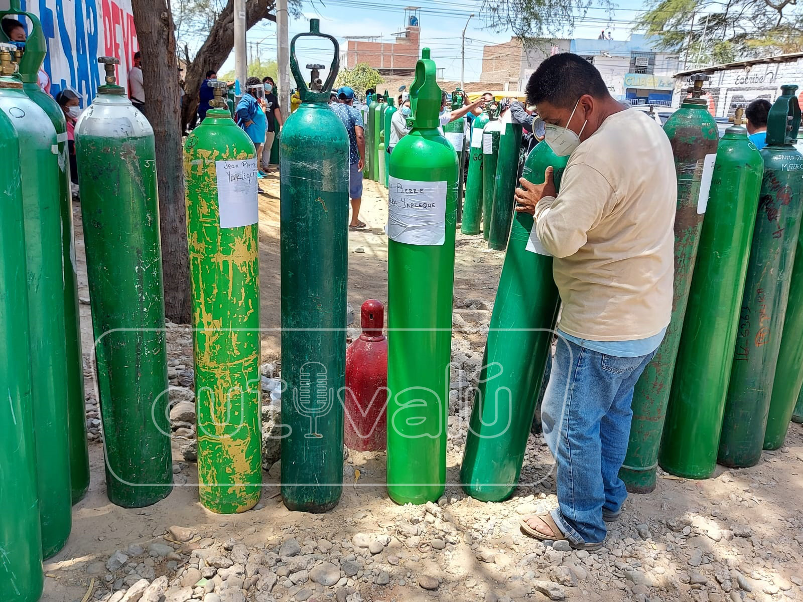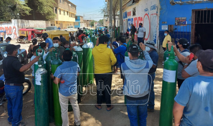 Decenas de pobladores formaron desde la mañana del lunes 19 de abril para llenar aproximadamente 100 balones de oxígeno, destinados a sus familiares contagiados con la covid-19. Las personas que esperaban su turno pidieron a la empresa que controle la distribución de oxígeno para uso medicinal, pues temían que el recurso se agotara antes de abastecer a todos los asistentes.
