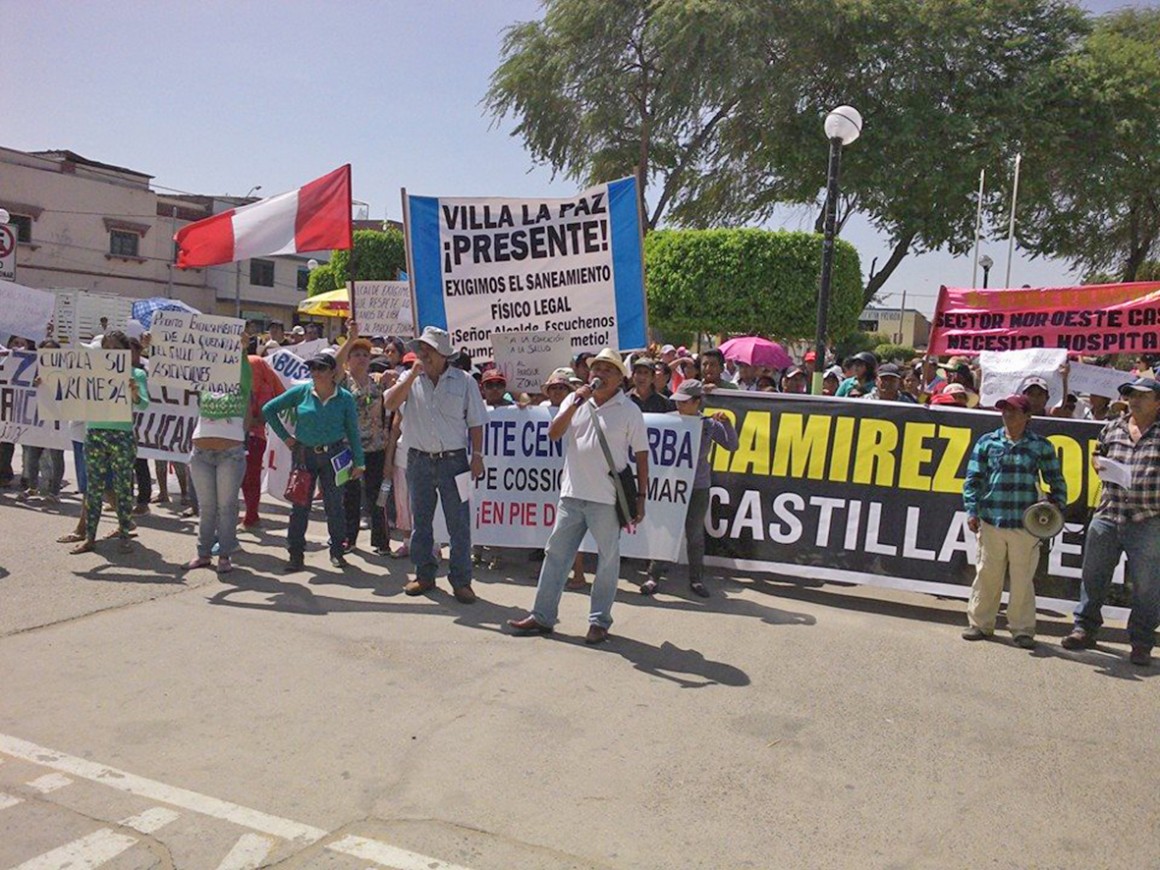 Moradores del sector noreste Castilla marcharon hacia la municipalidad distrital para exigirle al alcalde Luis Ramírez apresurar la recepción de la obra de agua y alcantarillado para 14 asentamientos de este sector.