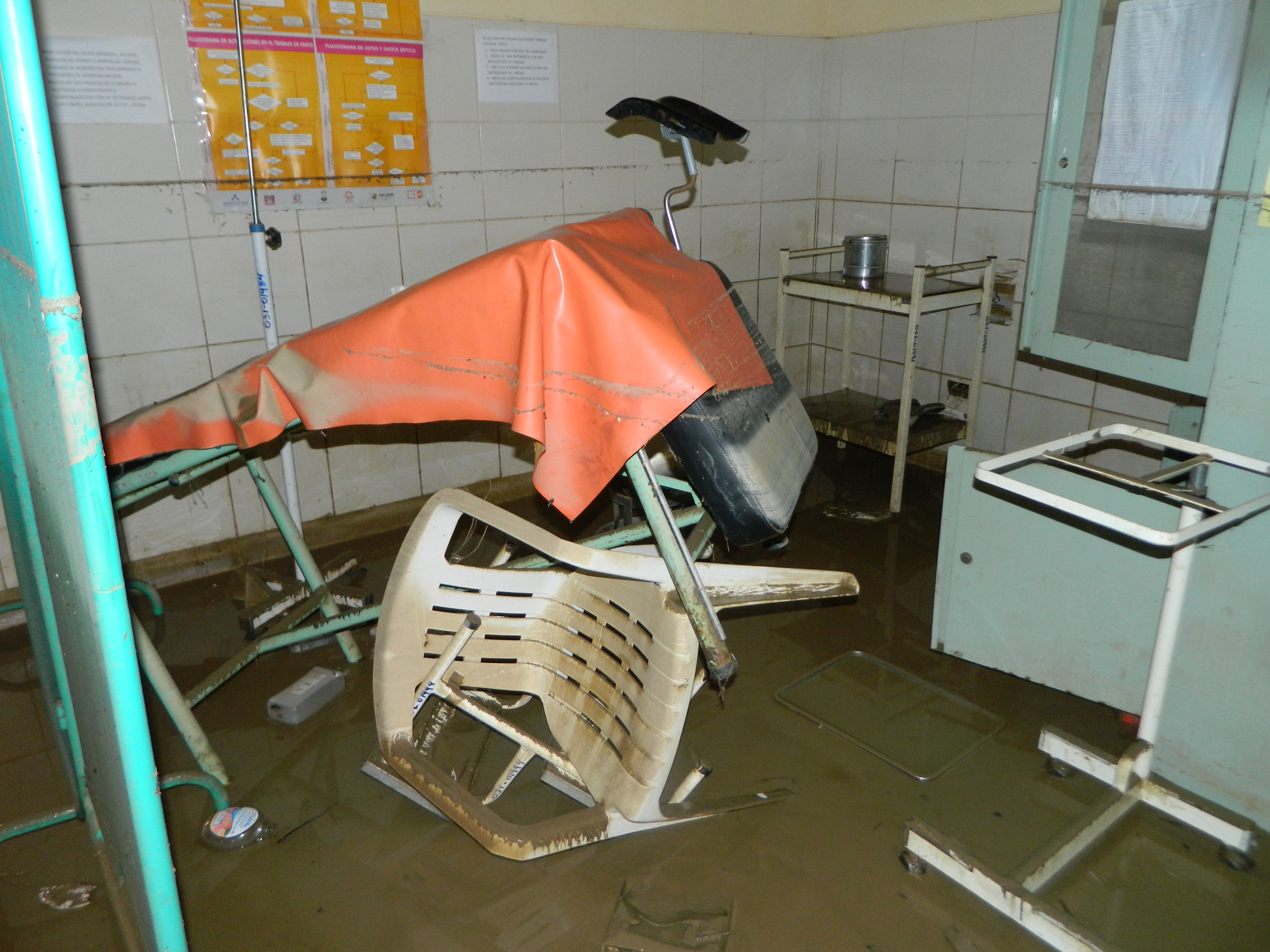 No solo los ambientes están dañados, sino varios equipos e instrumentos médicos que fueron hallados en el piso de los diversos ambientes. Asimismo, las historias clínicas de los pacientes prácticamente se han perdido con el agua. La población de Catacaos, La Arena y zonas aledañas no tiene por ahora un establecimiento médico donde atenderse, en plena emergencia.