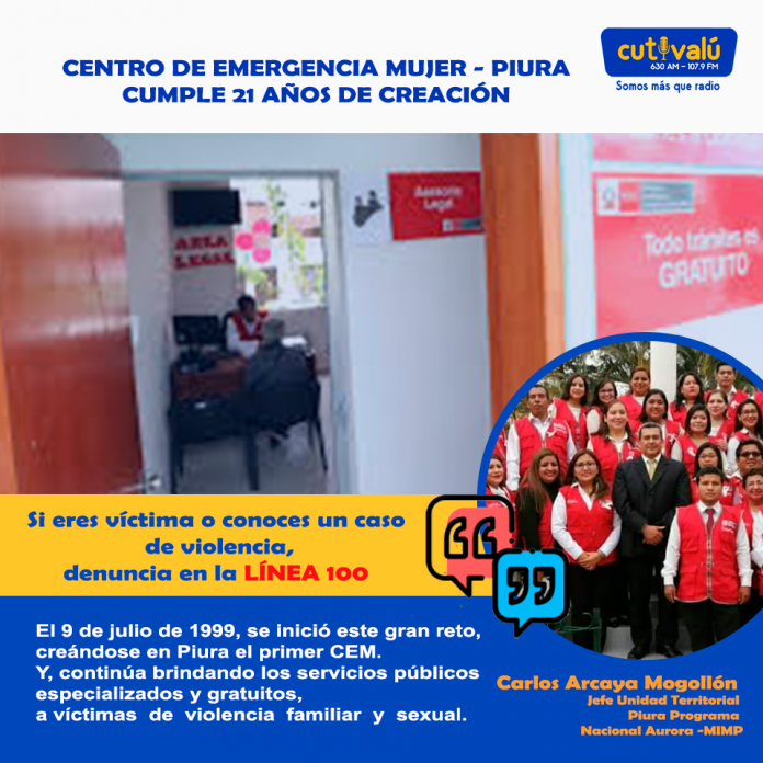 E incluso, en estos tiempos de emergencia sanitaria, han continuado con la atención, pese a las adversidades. «Veintiún años de labor institucional no se cumplen siempre;y por ello, aun en estas circunstancias, celebramos con gran satisfacción, orgullo y entusiasmo este aniversario, con el fiel compromiso de continuar brindando los servicios públicos especializados y gratuitos, de atención integral y multidisciplinaria, para víctimas de violencia familiar y sexual, ofreciendo orientación legal, defensa judicial, consejería psicológica y social», sostiene Carlos Arcaya Mogollón, jefe de la Unidad Territorial Piura Programa Nacional Aurora -MIMP.