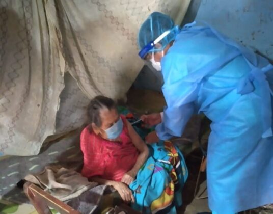 En un claro ejemplo de vocación de servicio, la enfermera Karin Maco Pacherres del establecimiento de salud I2 San Pedro, en la jurisdicción de la Sub Región de Salud Morropón Huancabamba, caminó hasta cerca de 1 hora y cruzó un río para vacunar a los adultos mayores que no pudieron asistir a los puntos de vacunación por presentar problemas físicos.