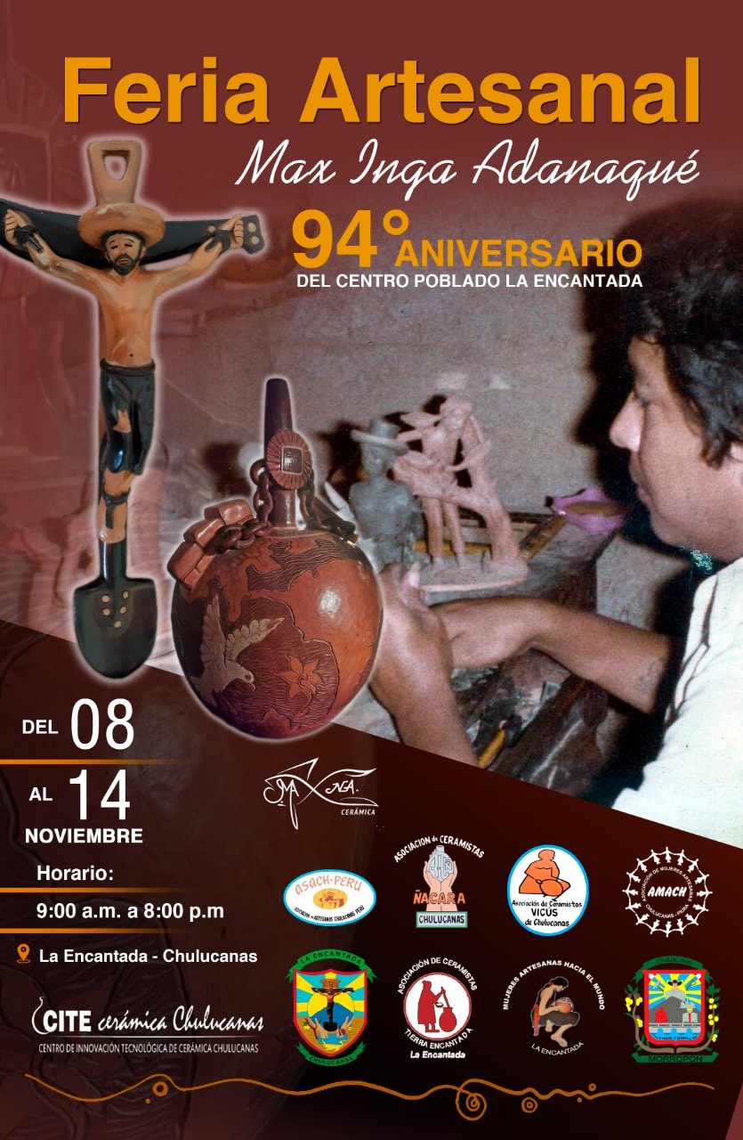 Los artesanos y artesanas de Chulucanas dieron inicio a la feria artesanal «Max Inga Adanaqué», en el marco de la reactivación económica de las y los emprendedores de la provincia. La feria se encuentra en La Alameda de La Encantada y permanecerá hasta el 14 de noviembre de 09:00 a.m. a 08:00 p.m.