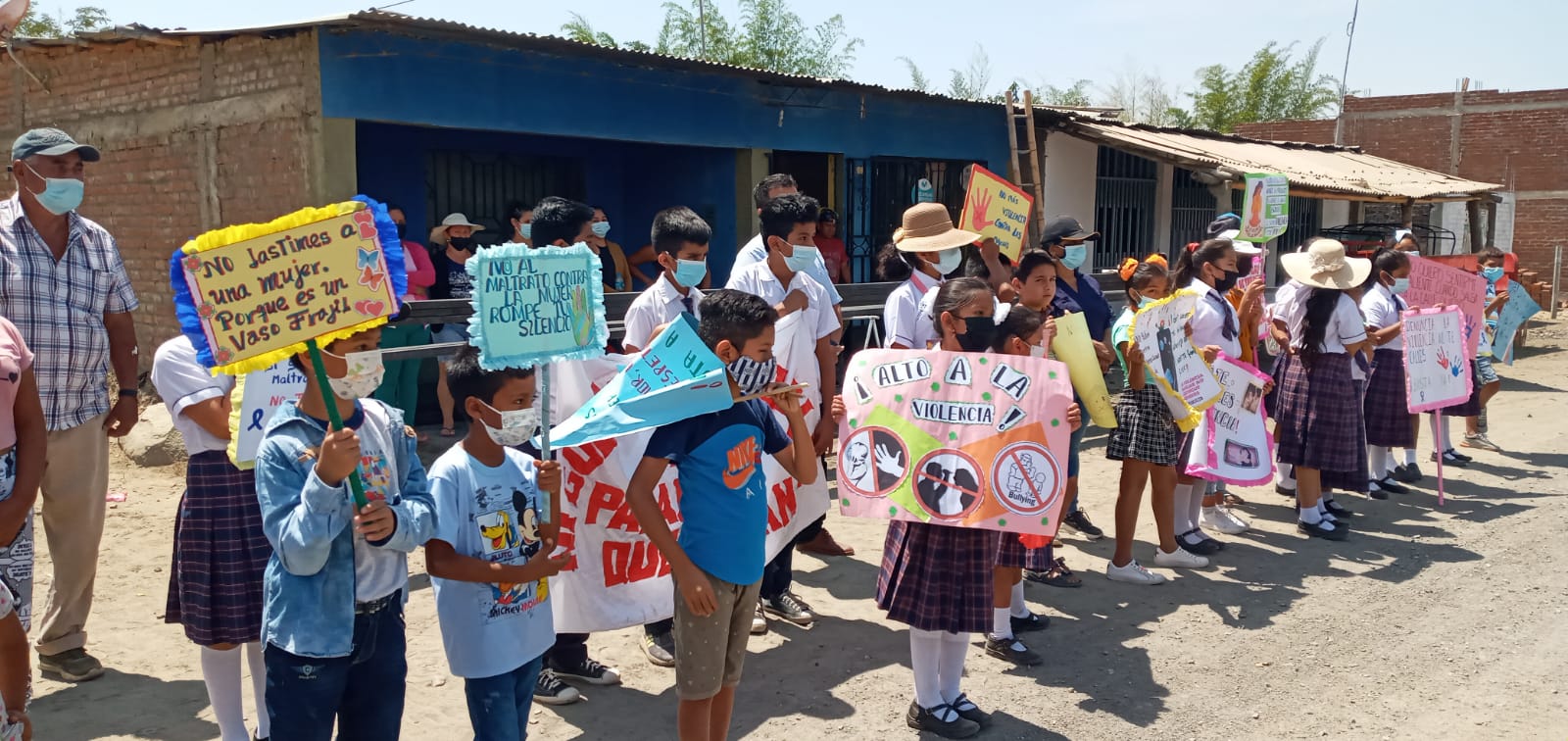 Las dramatizaciones realizadas en los siete centros poblados que cuentan con Instancias Comunitarias tuvieron como tema otros tipos de violencia en distintos contextos. Además, en Chulucanas, Yapatera, Batanes, Vicús, Paccha, Talandracas, San Pedro y La Encantada se realizaron caminatas contra la violencia, donde participaron operadores, integrantes de la sociedad civil, docentes, niños, niñas y adolescentes.