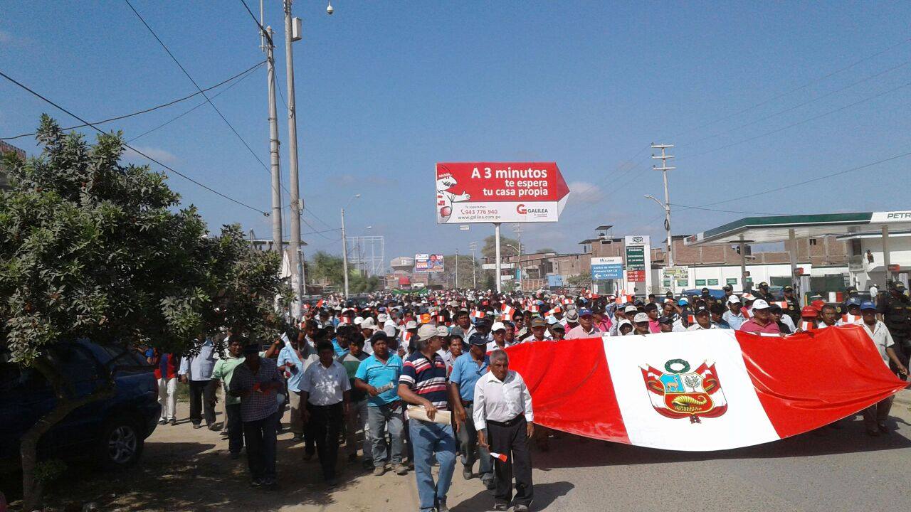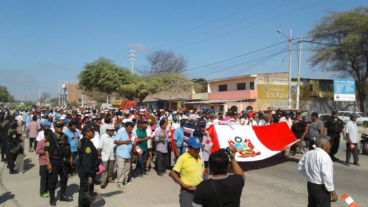 Centenares de agricultores del medio y bajo Piura se movilizaron para exigir la inmediata rehabilitación de los canales de regadío y demás infraestructura dañados por el Niño Costero.