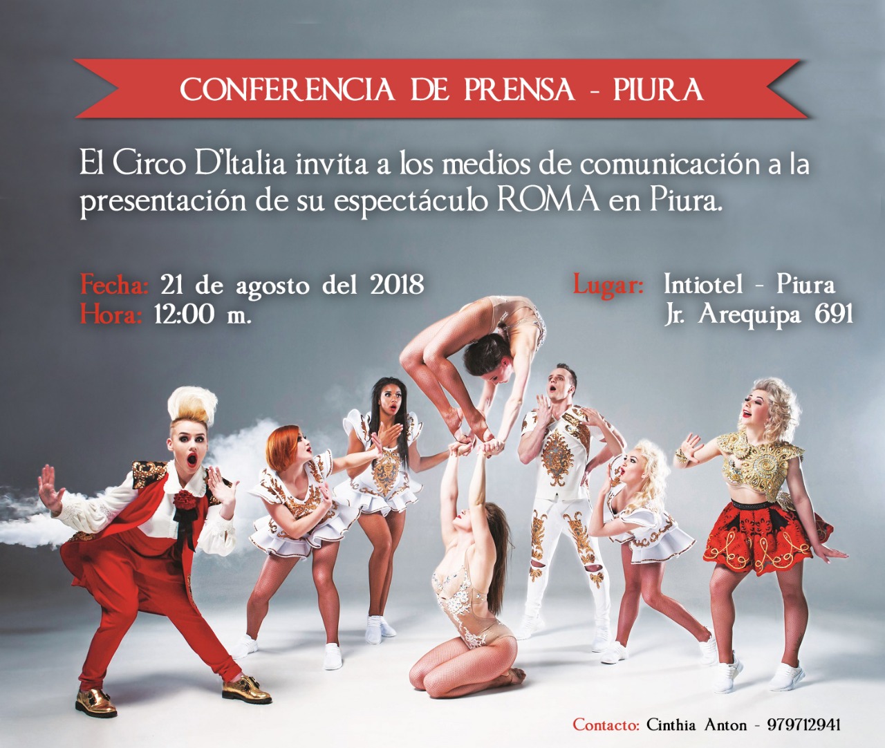 Del 23 al 26 de agosto, en el coliseo del colegio Salesiano Don Bosco, llega a Piura el Circo d ’ Italia con la magia de Roma, con un talentoso elenco conformado por más de 30 artistas del mundo quienes darán vida a Roma, el nuevo espectáculo.