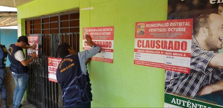 Tras el crimen del empresario piurano, Noé Jiménez Merino conocido como «El Ayabaquino» en el interior del bar «El Delfín», el área de fiscalización de la Municipalidad Distrital de Veintiséis de octubre clausuró de forma definitiva el local. De acuerdo a la información proporcionada por el área de fiscalización, el bar de propiedad de Celsa … Sigue leyendo Clausuran bar «El Delfín» tras crimen de «El Ayabaquino»