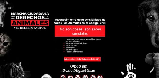 El Comité por los Derechos de los Animales invita a la ciudadanía en general a una marcha por los derechos de los animales y el bienestar animal este miércoles 18 de octubre a las 5:00 p.m. en el Óvalo Miguel Grau de Piura. La manifestación busca dar reconocimiento de la sensibilidad de todos los animales … Sigue leyendo Colectivos invitan hoy a marcha por los derechos de los animales