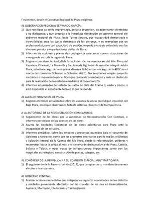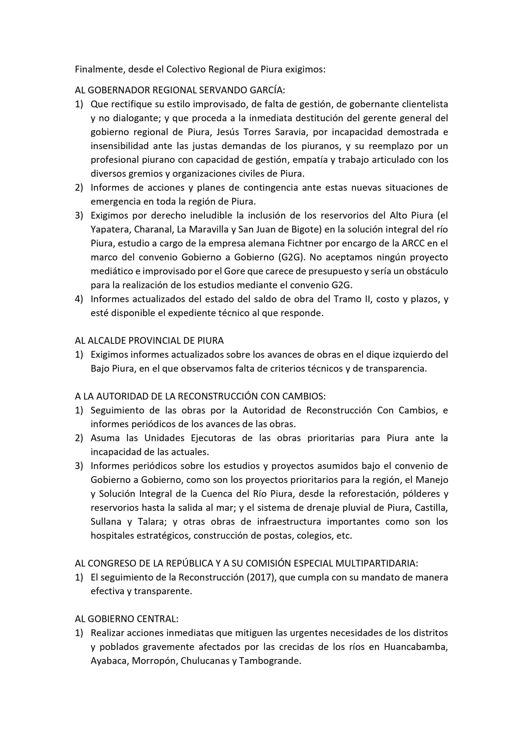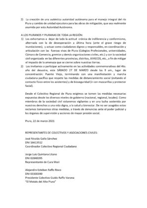 Dato: El Colectivo regional de Piura convoca a la población para este sábado 27 de marzo a una marcha pacífica. Punto de concentración: puente San Miguel (expuente viejo) a las 9 de la mañana.