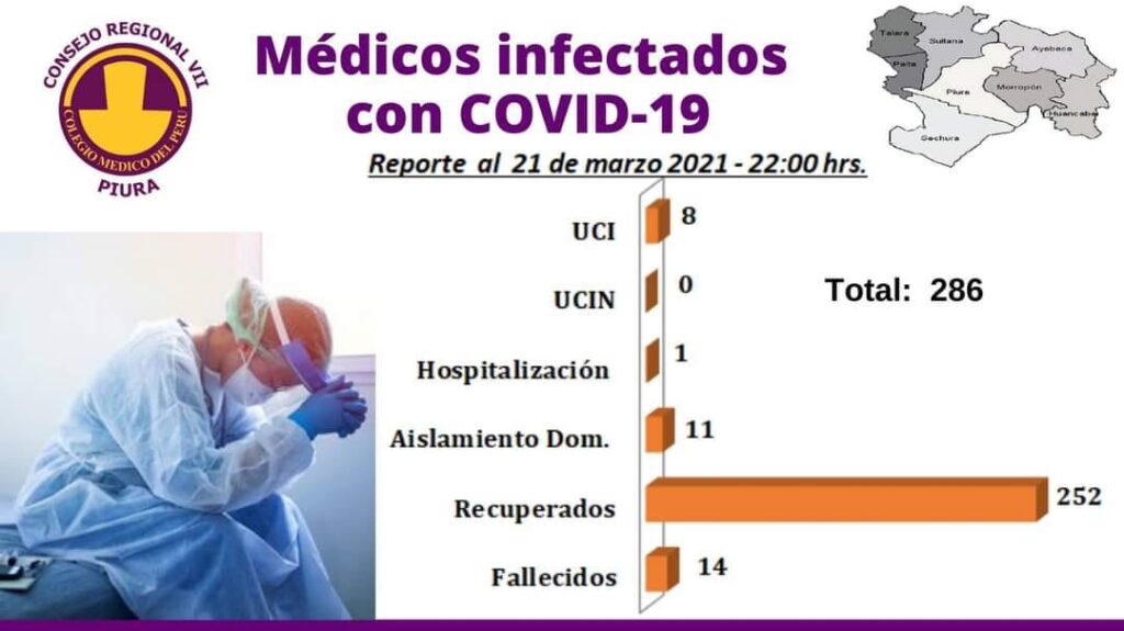 La Dirección Regional de Salud ya había informado que a nivel regional solo quedan siete camas UCI disponibles, las mismas que se encuentran en Talara, sin embargo, el decano del Colegio Médico de Piura, Arnaldo Lachira Albán, destacó que la disponibilidad de camas de hospitalización también “es preocupante”.