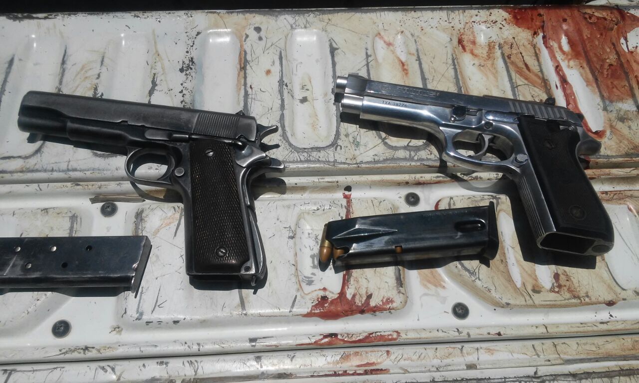 Carlos Jaura Caraguay y Carlos Rios Morales portaban dos armas de fuego, Taurus 9 mm y Browning 9 mm, respectivamente, que fueron requisadas. Los hombres fueron llevados al centro de salud de Suyo para su posterior evacuación al hospital de apoyo III Sullana.