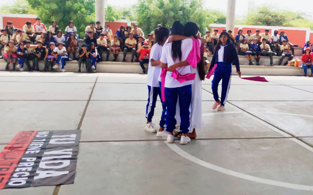 Alumnos y padres de familia de la I.E «La Rita» de Tambogrande realizaron un intercambio de experiencias sobre trata de personas en la comunidad educativa. Esta presentación se realizó en el marco de la Presentación de talleres de arte y la clausura de la IV escuela para padres.