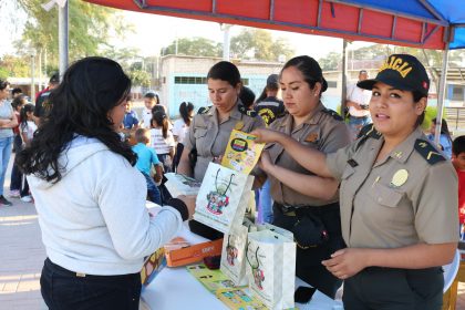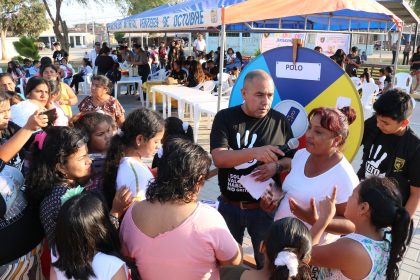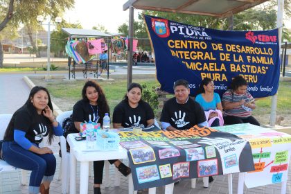 En la Plaza Cívica del asentamiento humano San Martín se llevó a cabo la feria informativa “Juntas y Juntos Contra la Violencia Hacia las Mujeres”, organizada por Cutivalú, Ugel Piura y la Municipalidad de Veintiséis de Octubre, auspiciada por la Agencia Vasca de Cooperación Internacional.