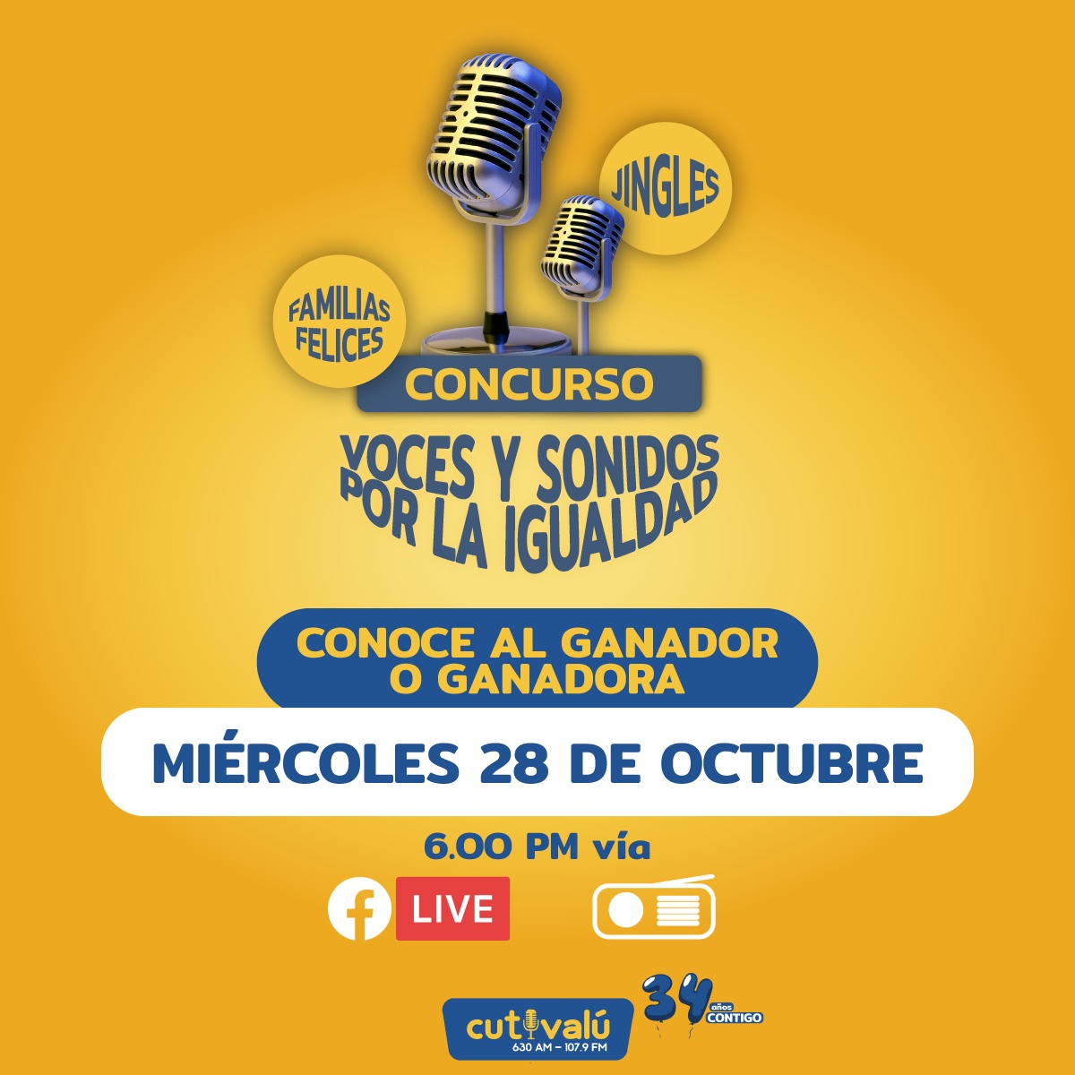 Como parte de las actividades de celebración por sus 34 años, Cutivalú organizó el concurso «Voces y sonidos por la igualdad», cuyo final está a punto de llegar con el anuncio del jingle ganador. El cual esta programado para este miércoles 28 de octubre a las 6 p.m.
