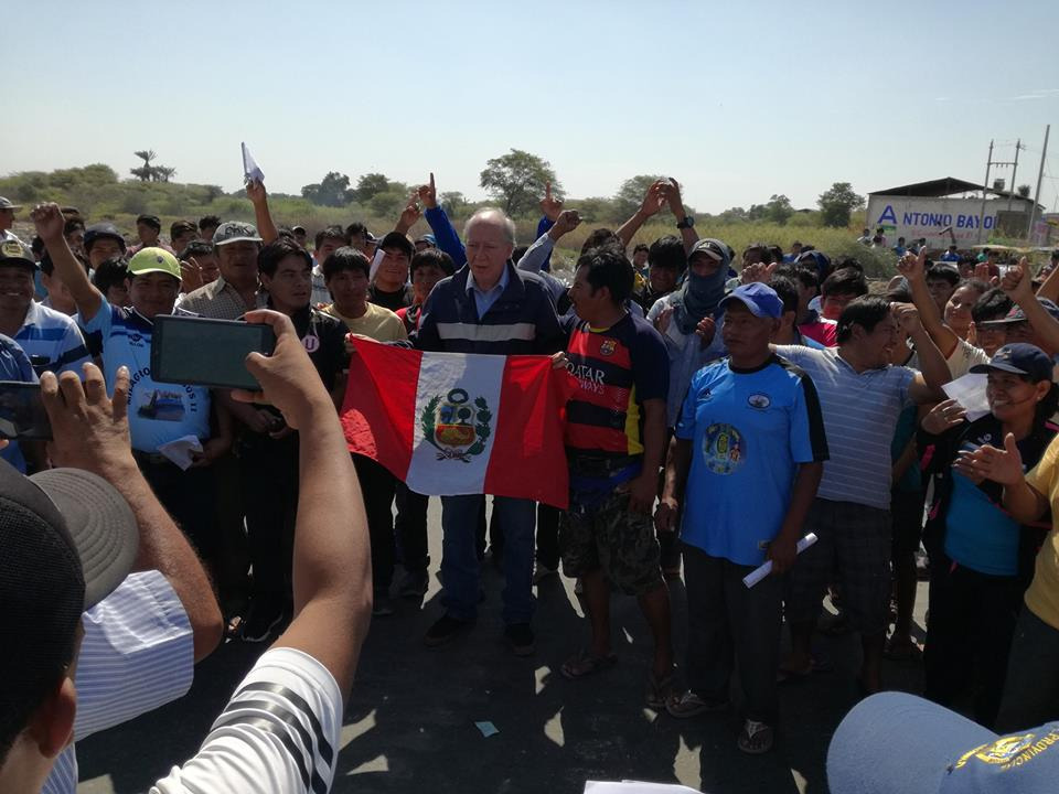 Congresista Manuel Dammert, conversó con los manifestantes en este punto de bloqueo de los pescadores. Puente Miraflores, les manifestó su total respaldo, hasta lograr la derogatoria de los DS lesivos a los intereses de la nación y que dan la autorización para la exploración y explotación de lotes petroleros en el mar de Grau. Los decretos supremos, fueron firmados por el ex presidente de la República Pedro Pablo kuschinsky, el mismo día de su renuncia.